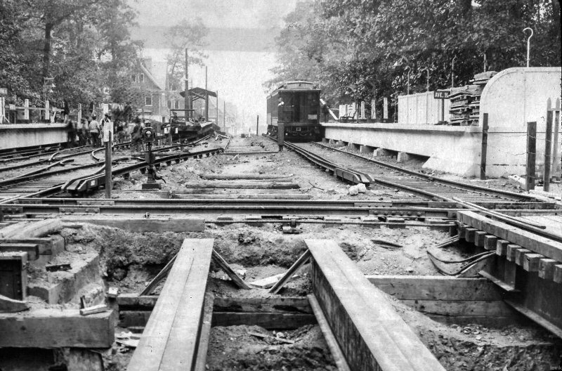 4. Пригородная железная дорога к пляжам на юге Бруклина существовала с конца XIX века, но в начале 1900х годов её решили перестроить, чтоб убрать перекрёстки, где рельсы и улицы были на одном уровне. Для этого прошли масштабные работы, в ходе которых рельсы были подняты над землёй - в основном их провели по насыпи, а на самом юге - подняли на стальную эстакаду.
