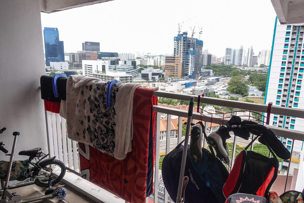 Тем, кому не повезло купить квартиру рядом с таким пролетарским балконом, приходится использовать более традиционную сингапурскую сушилку. (Если приглядеться, на фото номер 2 видны некоторые такие!)