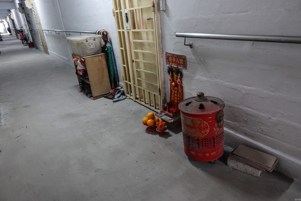 19. А эти ребята с одной стороны поставили возле своей двери аккуратную полочку, а с другой - религиозный алтарь. Здесь стопка апельсинов для местных духов (кажется, от мелочности!), и маленькая печь, чтоб отправлять "деньги" мёртвым родственникам.