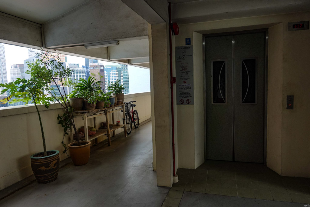 9. Но я хотел посмотреть на то, как живут в таких панельках местные. У меня есть несколько сингапурских знакомых, но все они высококвалифицированные экспаты, белые воротнички, которые живут в премиальных комплексах. Так что я понимал, что внутрь квартиры HDB мне вряд ли удастся заглянуть. Но хотелось хотя бы посмотреть на лестничные площадки этих домов. Я боялся, что и этого не выйдет - ведь бывает так, что уже для попадания в подъезд нужны ключи от дома. Но, оказалось, что в Сингапуре с этим всё проще, чем у нас. Сколько я не пробовал, все лифты были открыты, и все этажи без проблем доступны любому посетителю.