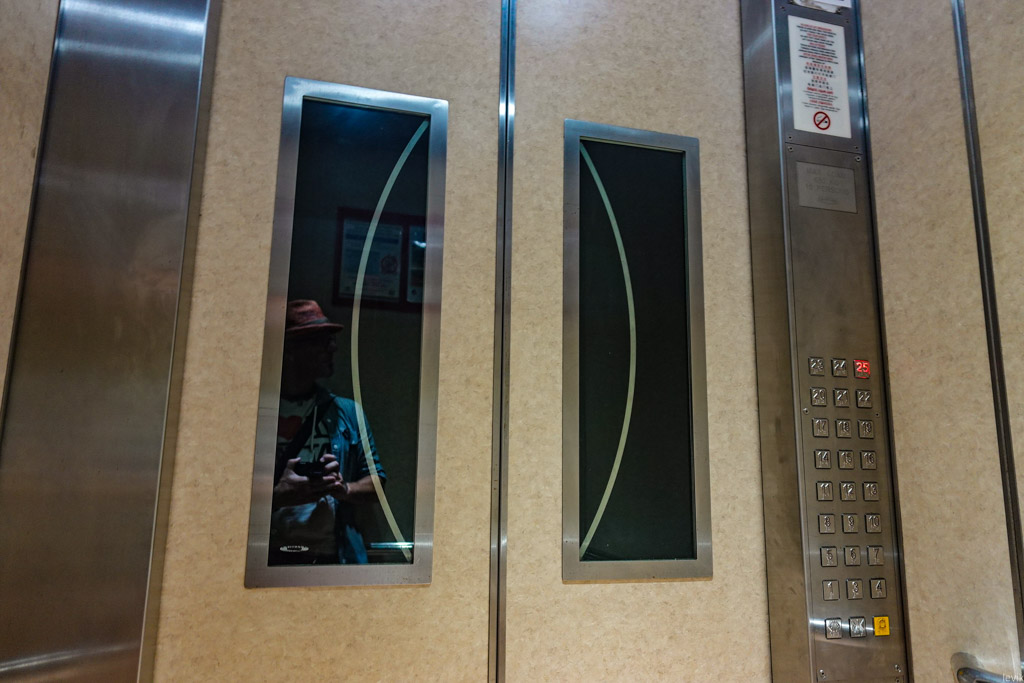 Посмотрел я на все эти виды и решил спускаться вниз. Еду в лифте, и тут, этаже на десятом входит ко мне женщина, на вид лет 50. Двери закрываются, лифт едет дальше. Она пристально смотрит на меня, а я стараюсь из-под солнечных очков не подавать виду, что заметил это. Тут она мне говорит: