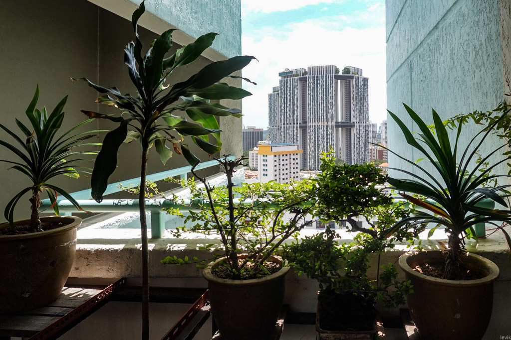 38. Кстати, тут на открытых площадках жильцы стараются по возможности озеленить своё пространство, ставят растения в кадках. Если достаточно много их собрать в одну кучу, получаются небольшие джунгли.