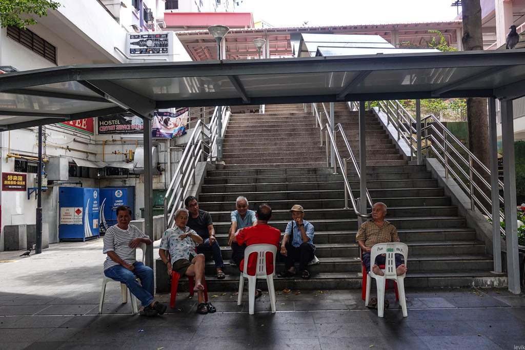 5. Все местные отдыхающие - люди постарше, и со своими пластмассовыми стульчиками. В жаркую погоду (а в Сингапуре бывает две погоды - жара и дождь) они знают где обосноваться, чтоб быть в тени. Приходят посидеть на свежем воздухе, пообщаться с соседями по комплексу, обсудить последние новости мировой экономики и геополитики, и поругать местных чиновников. Уверен, здесь вам непременно расскажут, что Илон Маск - шарлатан, а его компании вот вот лопнут как мыльный пузырь.