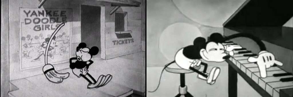 Итак, в первый своих появлениях у Микки на руках не было его знаменитых перчаток! Только через год, в 1929 году, Дисней надел их на своего самого знаменитого героя. Произошло это в мультфильме "Opry House":