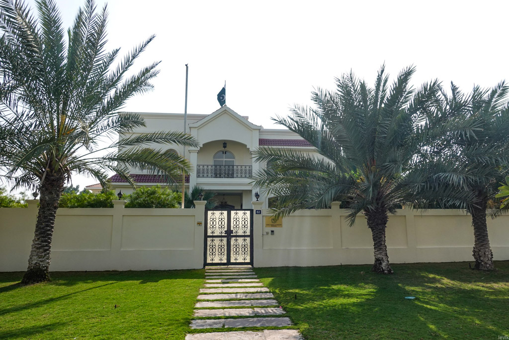 27. А есть виллы с иностранными флагами над ними. Это дома, принадлежащие дипломатическим миссиям - у многих стран в Дубае есть свои консульства. Вот, например, вилла консула Пакистана.
