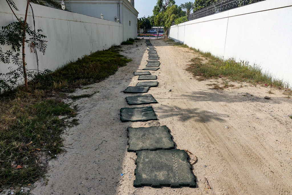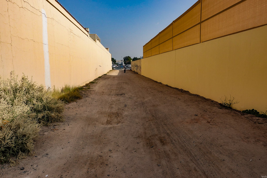 14. А ещё между виллами есть вот такие проходы, соединяющие кварталы. Нечто вроде переулков. Их как правило даже не асфальтируют, потому что ни один уважающий себя житель Дубая такими не пользуется. А если ты не уважающий себя житель, то зачем ради тебя стараться? Ходи себе по песку!
