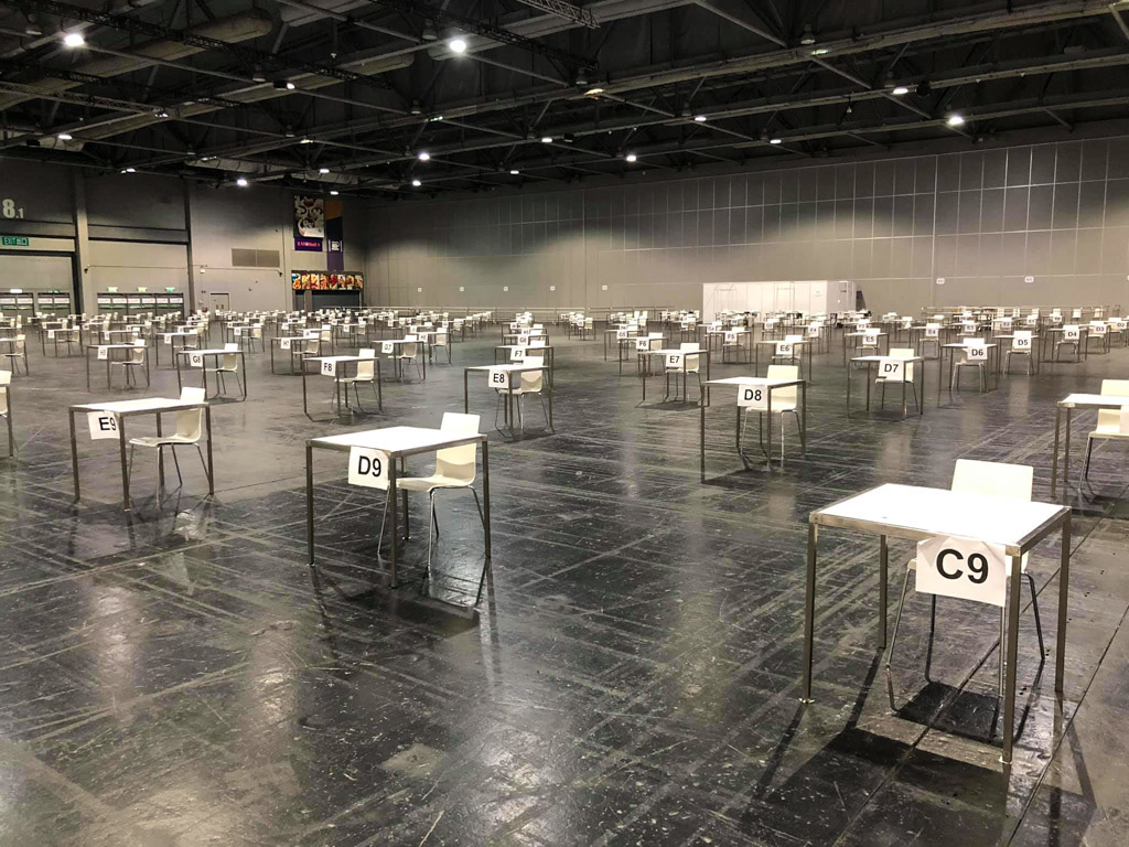 14. Получив багаж, мой друг попал в зону медосмотра. Здесь каждый из прибывших пассажиров должен сдать анализ на Covid-19. Люди со всех рейсов выстраиваются в очередь с зазором в 2 метра между собой, и подходят к столикам, где берут анализы.