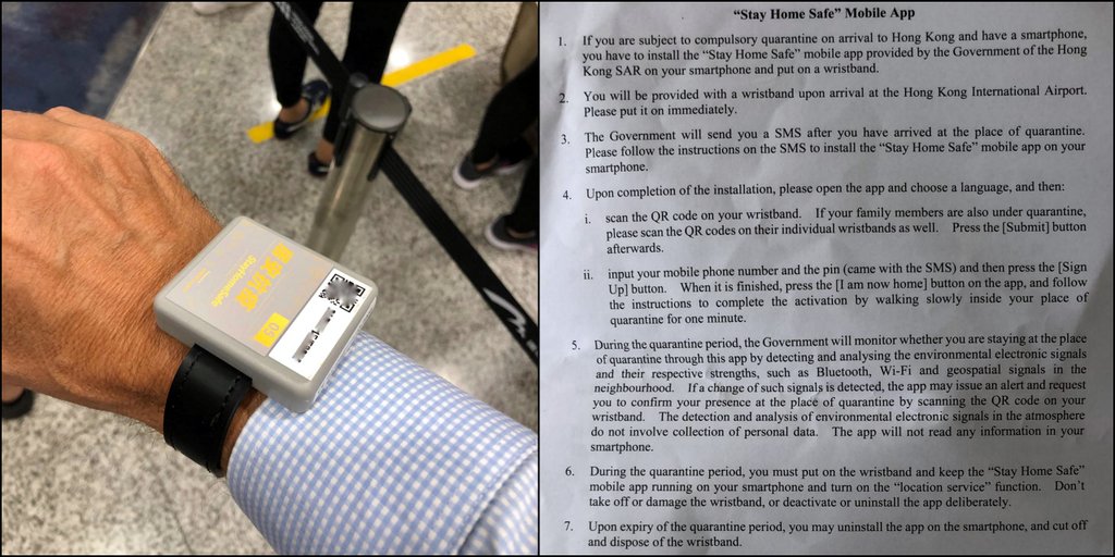 23. В итоге ему повезло - анализ показал отрицательный результат, и его отправили домой, надев в напутствие специальный браслет, и установив на телефон приложение для домоседов. Приехав домой, надо через приложение активировать браслет, после чего тебя просят какое-то время ходить по квартире. За это время устройство записывает все сигналы WiFi и Bluetooth в непосредственном окружении, их названия, силы сигналов, и так далее.
