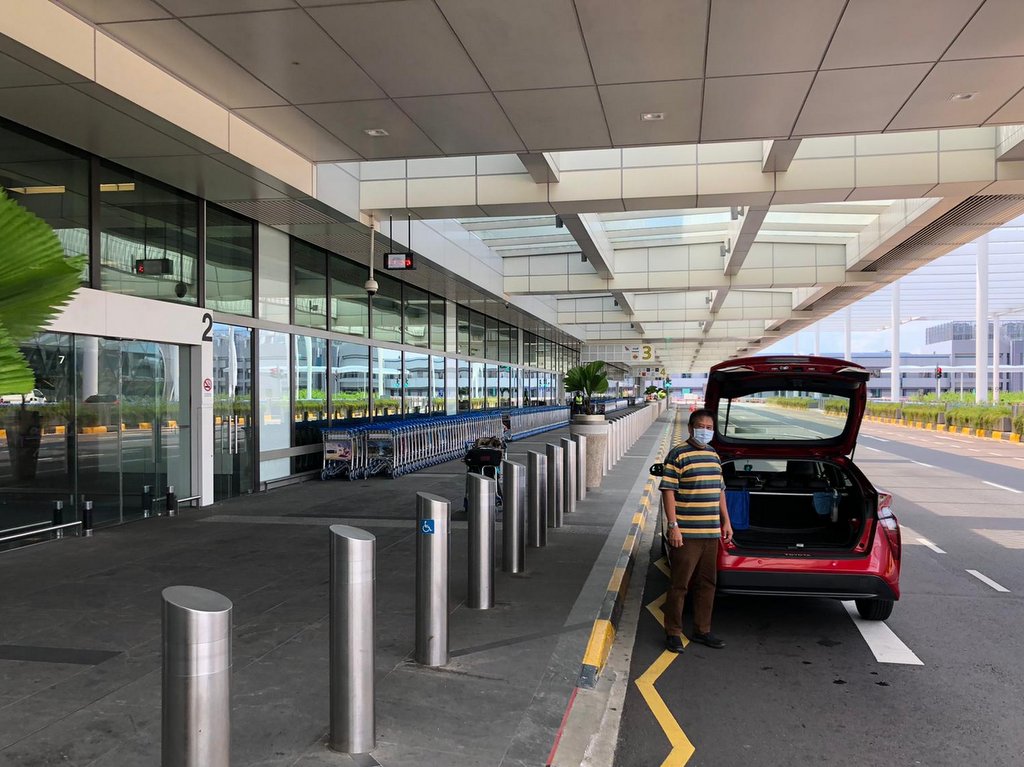 3. Он прибыл к терминалу аэропорта Changi на такси. В обычное время тут толчея машин и пассажиров, но сейчас перед входом в здание больше никого нет.