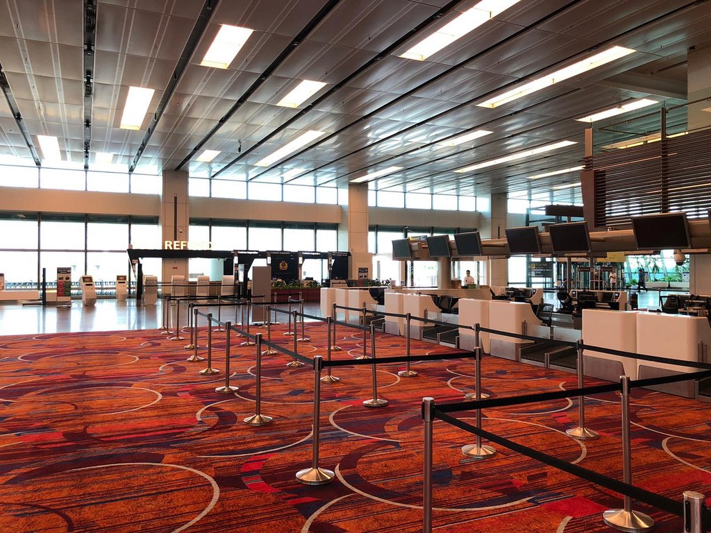 4. Чанги - один из лучших аэропортов мира, здесь просторные современные терминалы и великолепный Changi Jewel, с внутренними джунглями и водопадом. Но сейчас всё это пустует. В аэропорту, где обычно стоят очереди пассажиров, нет практически ни души.