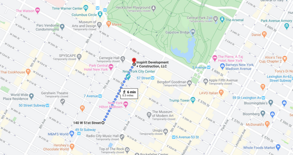 Шестая-с-половиной Авеню находится там, где бы вы и ожидали её найти: примерно на полпути между Шестой и Седьмой Авеню. Правда, она тянется всего на шесть кварталов: от 51й и до 57й стрит. Общая длина этой необычной улицы - где-то 400 метров.