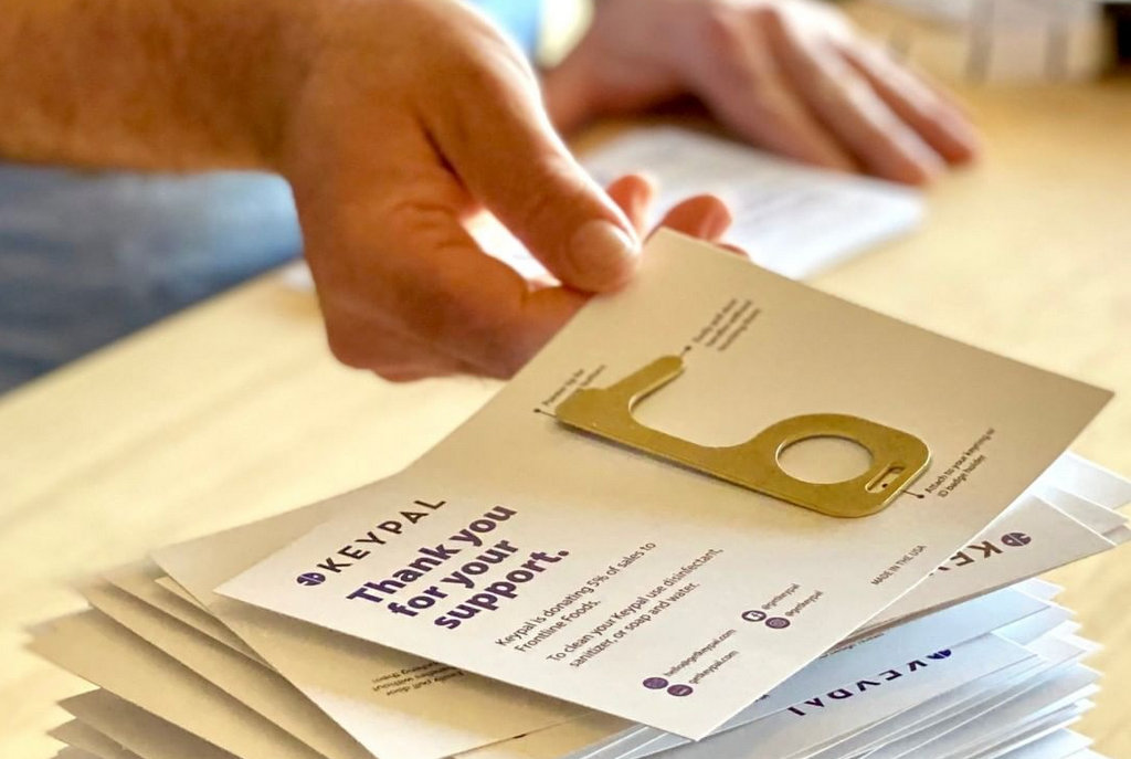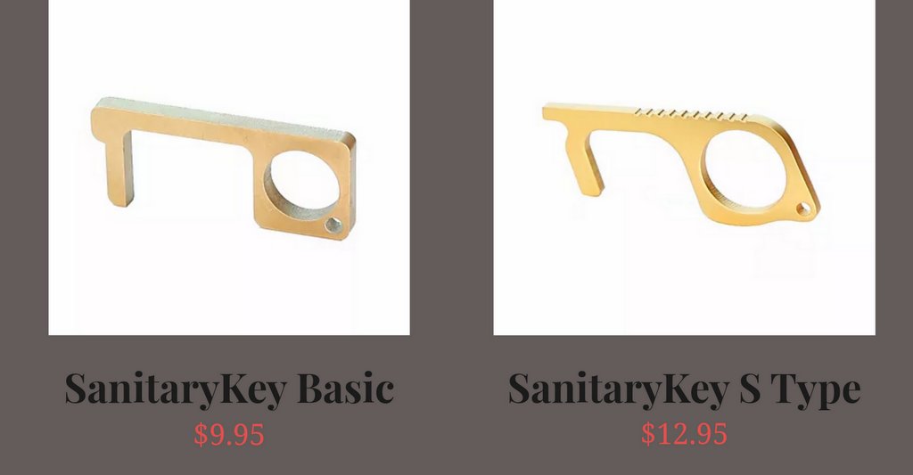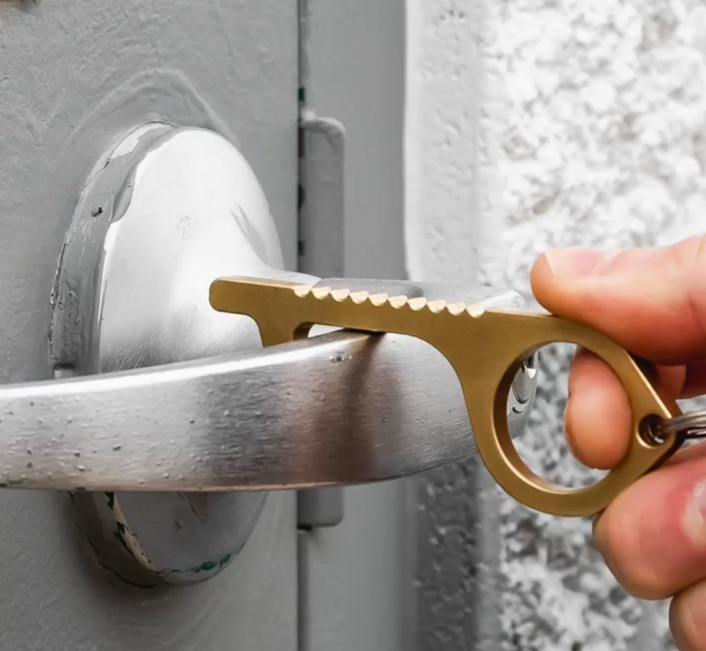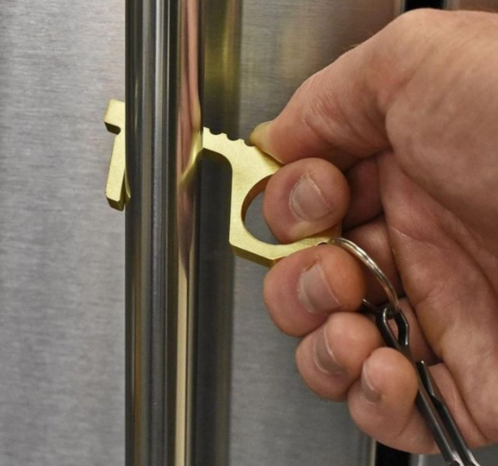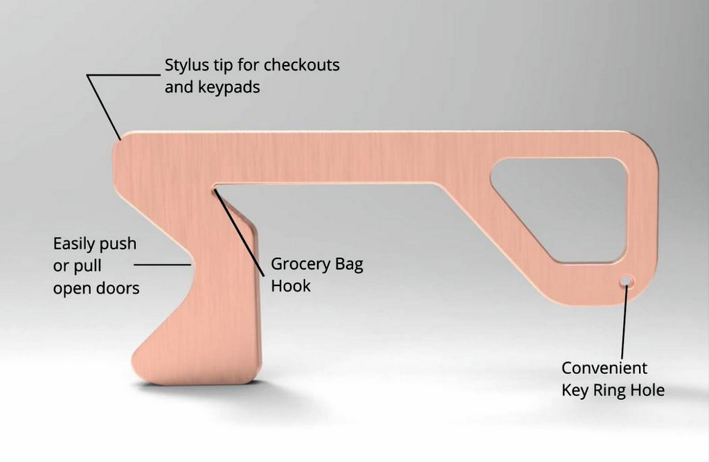 1. Я называю их "медными пальцами" - это небольшие железки из меди или латуни, которые якобы предназначены для того, чтоб не трогать потенциально заражённые поверхности руками. Впервые в моей ленте рекламы появилась вот такая очень простая штука по имени SanitaryKey.