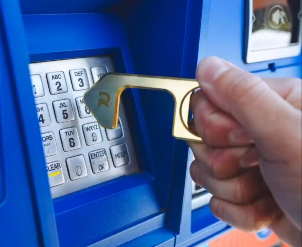 2. В теории эти медные пальцы - отличная идея. Нам ведь уже все уши прожужжали о том, как любая поверхность за порогом наших квартир и домов может быть источником смертельного вируса. И конечно, все мы стали (или, продолжили) мыть руки по несколько дюжин раз в день, но ведь этого потенциально мало! А медный палец позволяет человеку взаимодействовать с грязным миром, избегая непосредственного контакта. Реклама, которую мне показывают во всех окнах браузера, во всех приложениях телефона, хвастается, как легко можно использовать эти различные медные пальцы для решение повседневных задач. Например, можно ввести пинкод в банкомате!..