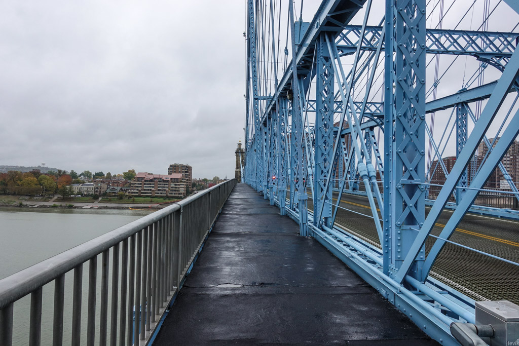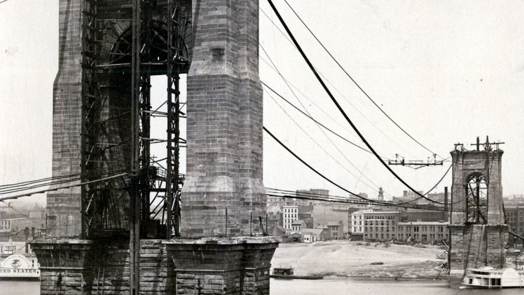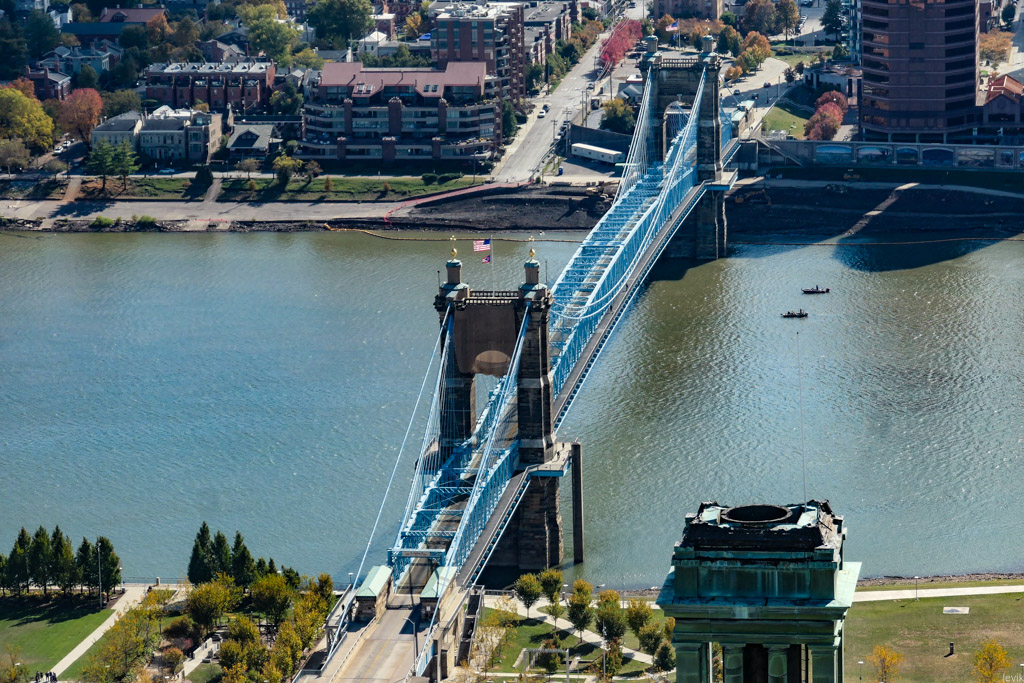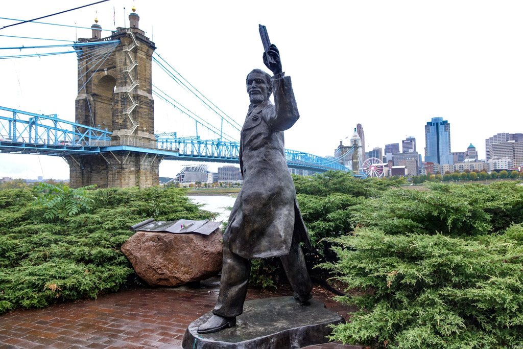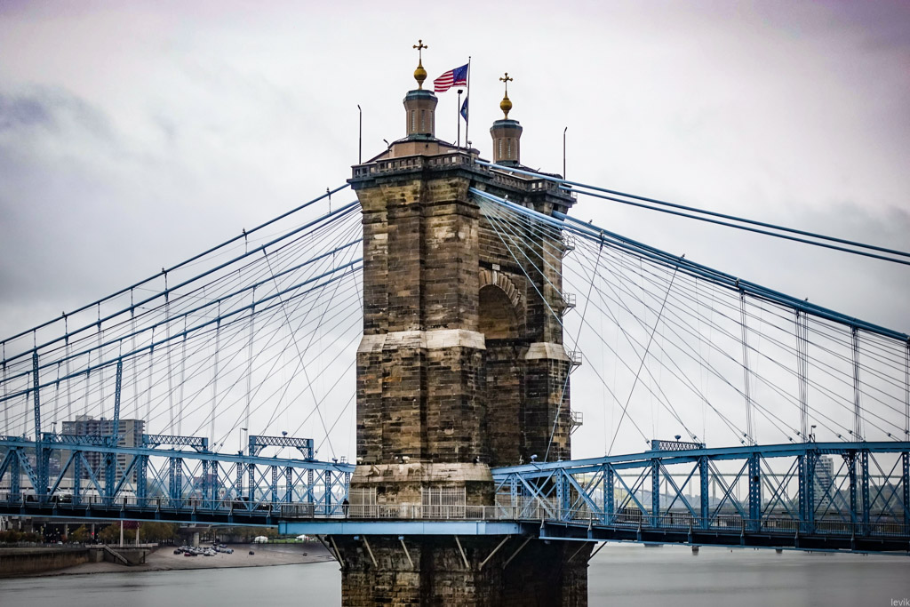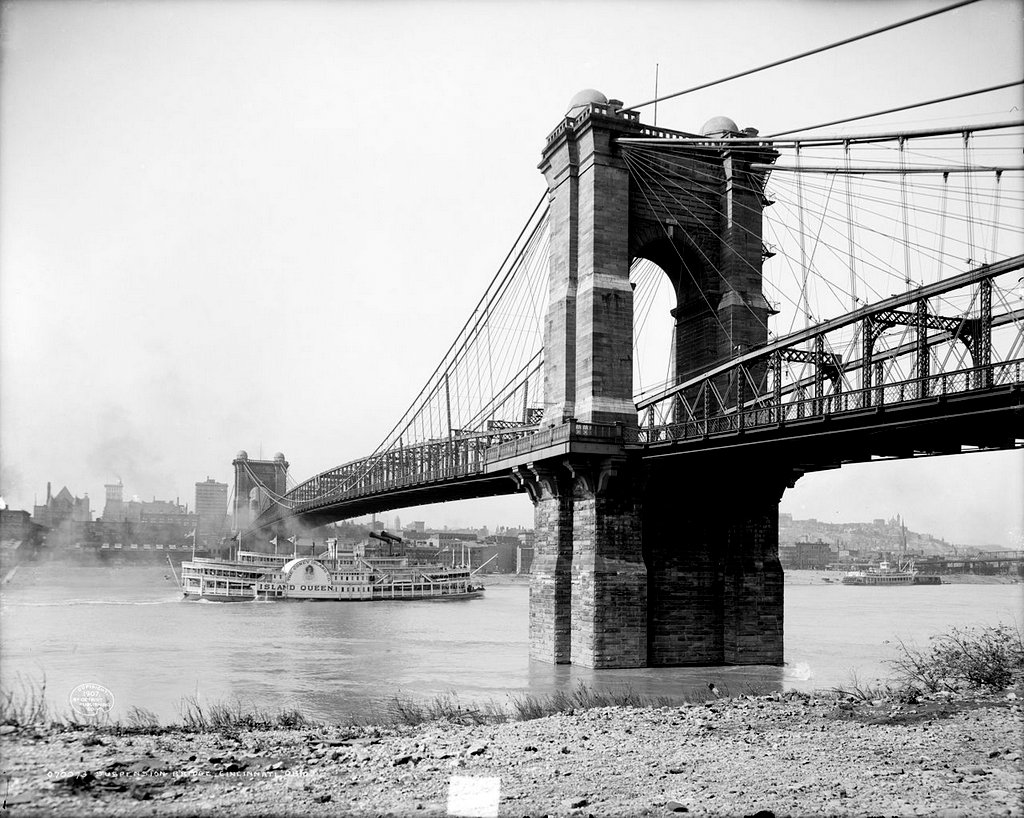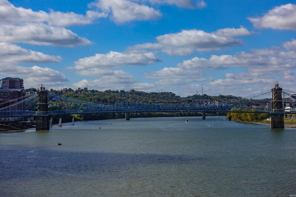 3. Впрочем, изначально мост в этом месте, через реку Огайо получил гораздо более прозаичное название: Мост между Цинциннати и Ковингтоном. Река служит границей между двумя штатами: Огайо и Кентукки, и к середине XIX века на её берегах выросли несколько городов, из которых Цинциннати был (да и остаётся) самым успешным и известным. Это был первый чисто американский город, крупный торговый центр, построенный не на атлантическом побережье для торговли со Старым Светом, а на берегу реки, в глубине континента.
