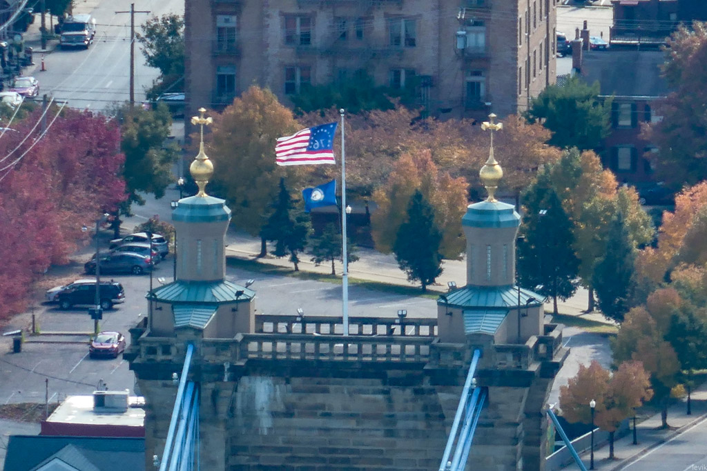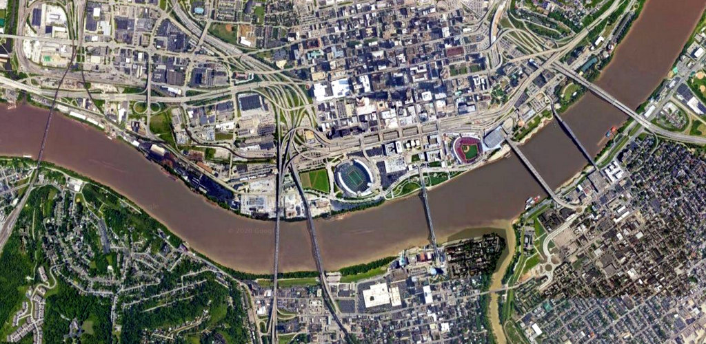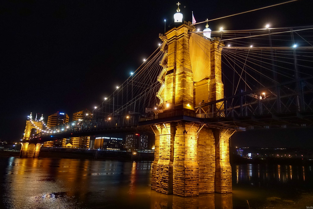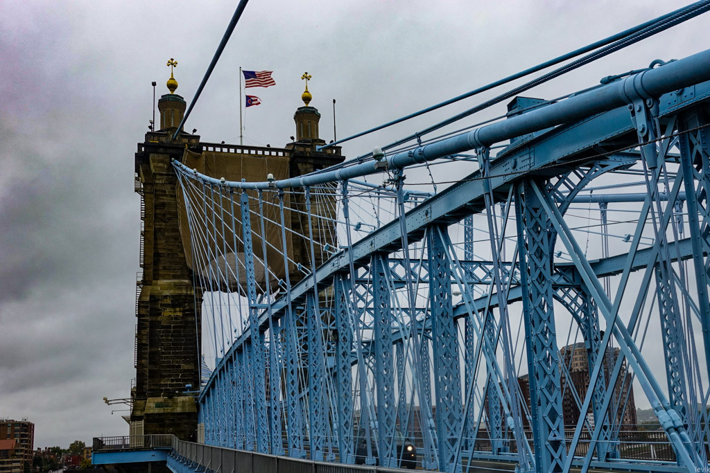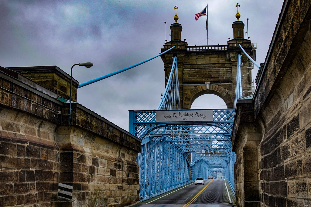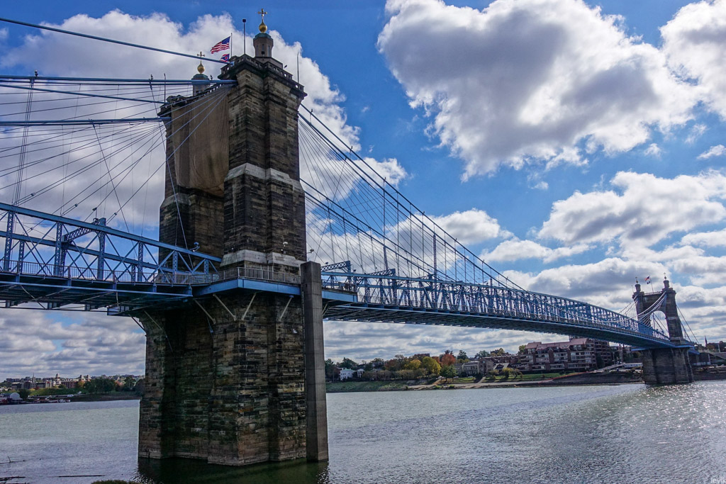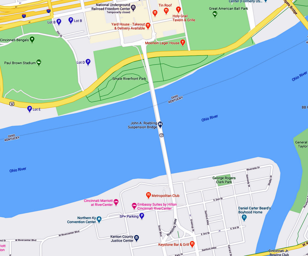 3. Впрочем, изначально мост в этом месте, через реку Огайо получил гораздо более прозаичное название: Мост между Цинциннати и Ковингтоном. Река служит границей между двумя штатами: Огайо и Кентукки, и к середине XIX века на её берегах выросли несколько городов, из которых Цинциннати был (да и остаётся) самым успешным и известным. Это был первый чисто американский город, крупный торговый центр, построенный не на атлантическом побережье для торговли со Старым Светом, а на берегу реки, в глубине континента.