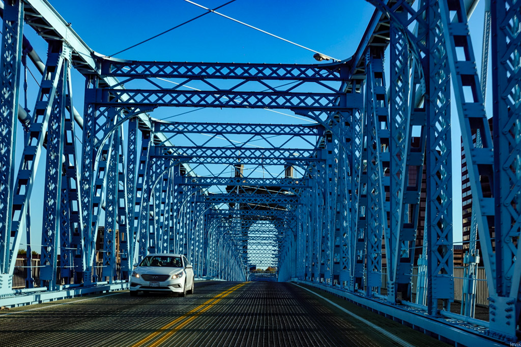 4. Сегодня в этом месте два штата соединены аж семью мостами, но в 1840х годах единственный способ перебраться с одного берега на другой были паромы. И они пользовались таким спросом, что на реке создавались пробки из судов. При этом растущий объём торговли и индустрии требовал всё больших и больших мощностей. Местные предприниматели понимали, что рано или поздно им нужно будет возвести мост через реку. Но как сделать это, не препятствуя речному судоходству, которым жил весь регион?..