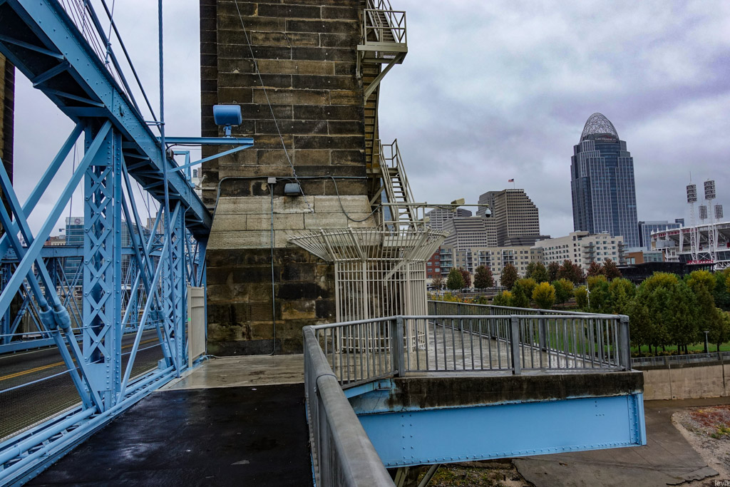 Надо сказать, что власти городов на обеих сторонах уже задолго знали, что рано или поздно они будут соединены мостами, из-за чего все улицы на стороне Огайо совпадали с улицами на стороне Кентукки. Резонным казалось бы построить мост, продолжив одну из существующих улиц, но власти Цинциннати почему-то решили, что такой очевидный подход не будет им на руку. Возможно, они хотели сохранить коммерческое первенство своего города над побратимами на противоположных берегах. Так или иначе, для моста выбрали место прямо между двух существующих улиц - так он проходит и по сей день.