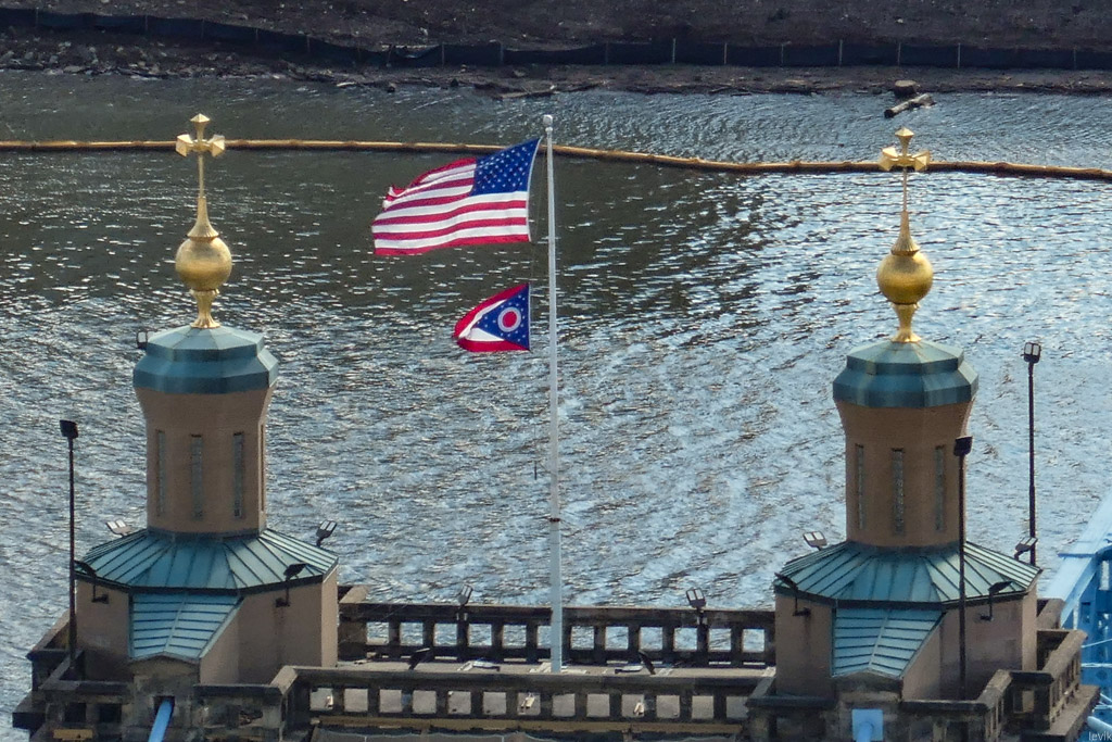 18. На одной из них развевается нынешний флаг США, и знамя штата Огайо...