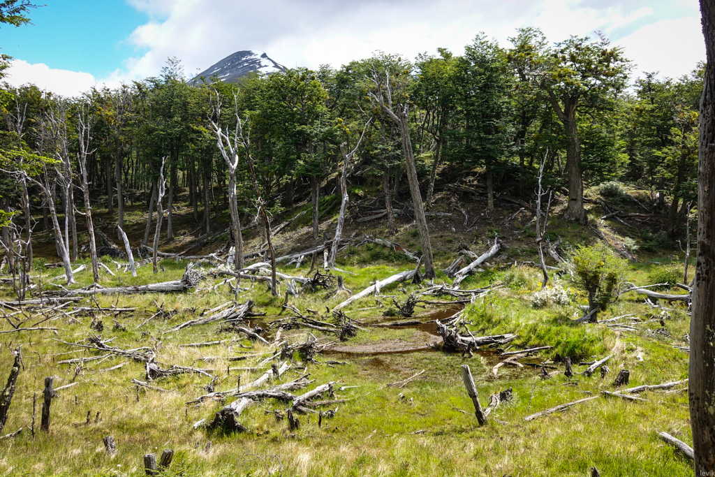 А главное - они продолжали строить плотины, и затапливать огромные поляны. Хрупкие местные деревья не выдерживают этого - их корни недостаточно глубоко уходят в почву, да и вообще они не привыкли стоять под водой. Так что теперь в лесах Огненной Земли стоят участки вымершего леса. Бобры то уже и перекочевали из этих мест, но деревья будут восстанавливаться ещё несколько веков.
