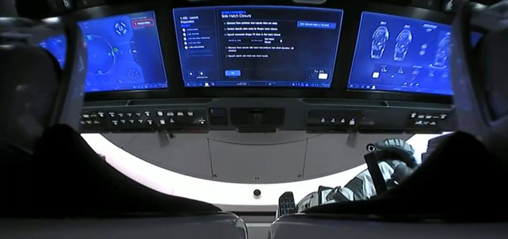 А вот, для сравнения, приборная панель которую инженеры SpaceX установили на свой Dragon: