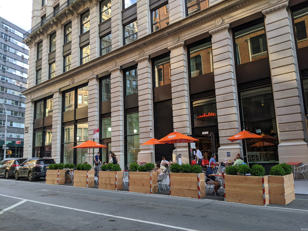 11. Работает множество уличных ресторанов. Сидеть внутри власти пока не разрешают, зато направо и налево выдают разрешения на устройство летних кафе. Даже парковочные места по такому случаю разрешают занимать. Главное - отгородить территорию от уличного движения.