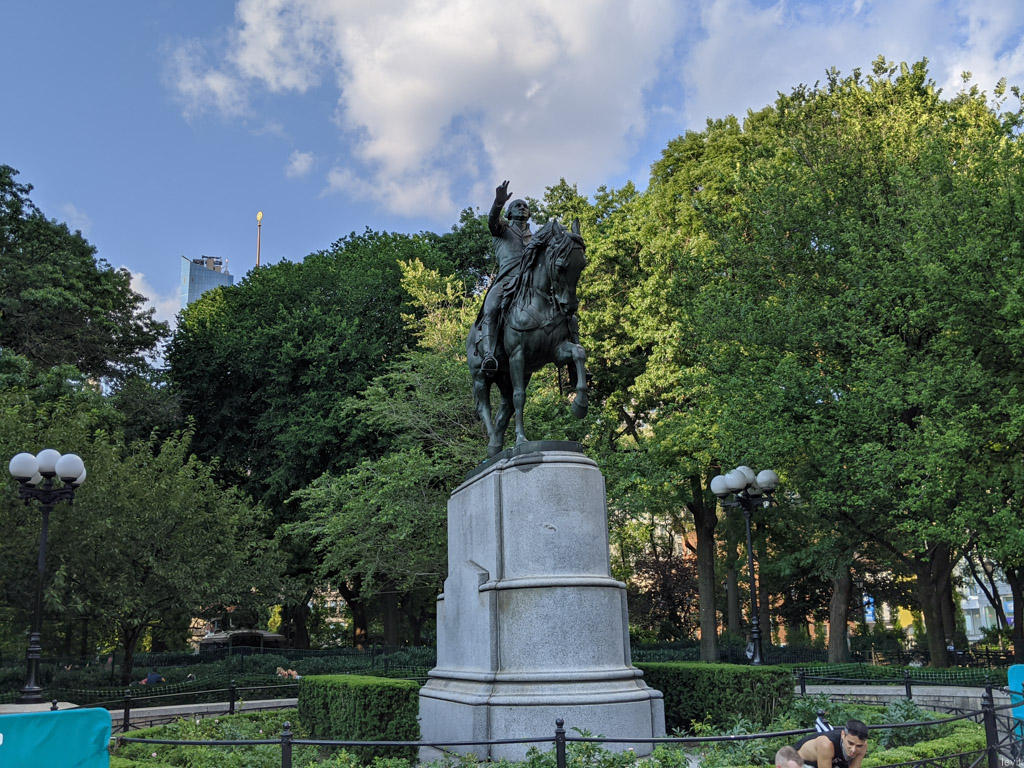 6. В центре площади стоит памятник Вашингтону. Несколько лет назад в США началось движение по сносу памятников героям Конфедерации. Тогда некоторые предупреждали: "Не стоит ворошить историю - так недолго и до Вашингтона дойдут!" И сейчас, на фоне беспорядков связанных с протестами, некоторые из памятников Вашингтону были облиты красной краской. Не этот, но были. Тут важно понимать, что это единичные случаи, и никакого большинства за этим даже и близко не стоит. Я сам категорически против (я ведь не такой левый, как тут принято писать в комментариях).