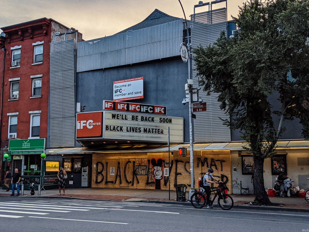 9. Вот заколоченный кинотеатр. Тут тоже решили обезопаситься фанерой, и вывесили Шибболет наших дней: надпись "Black Lives Matter".