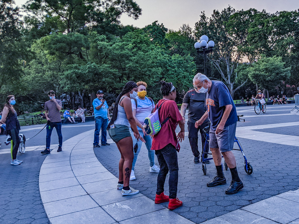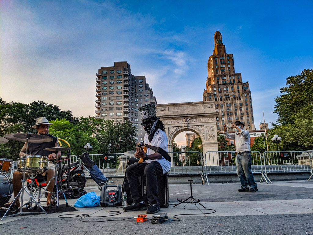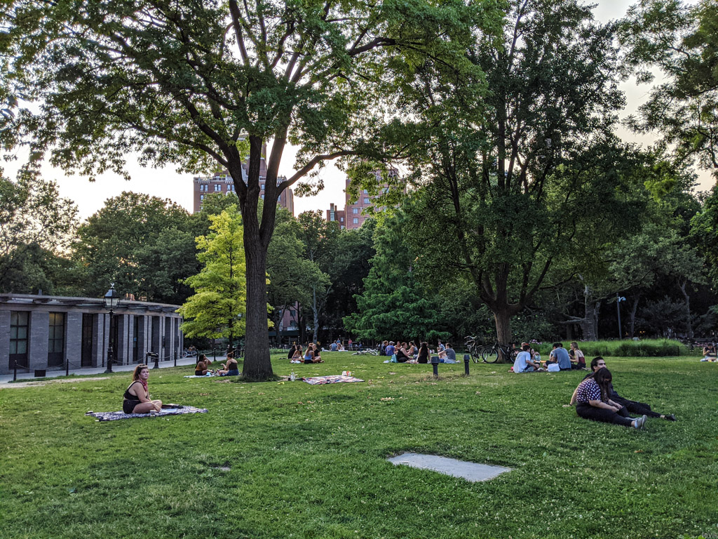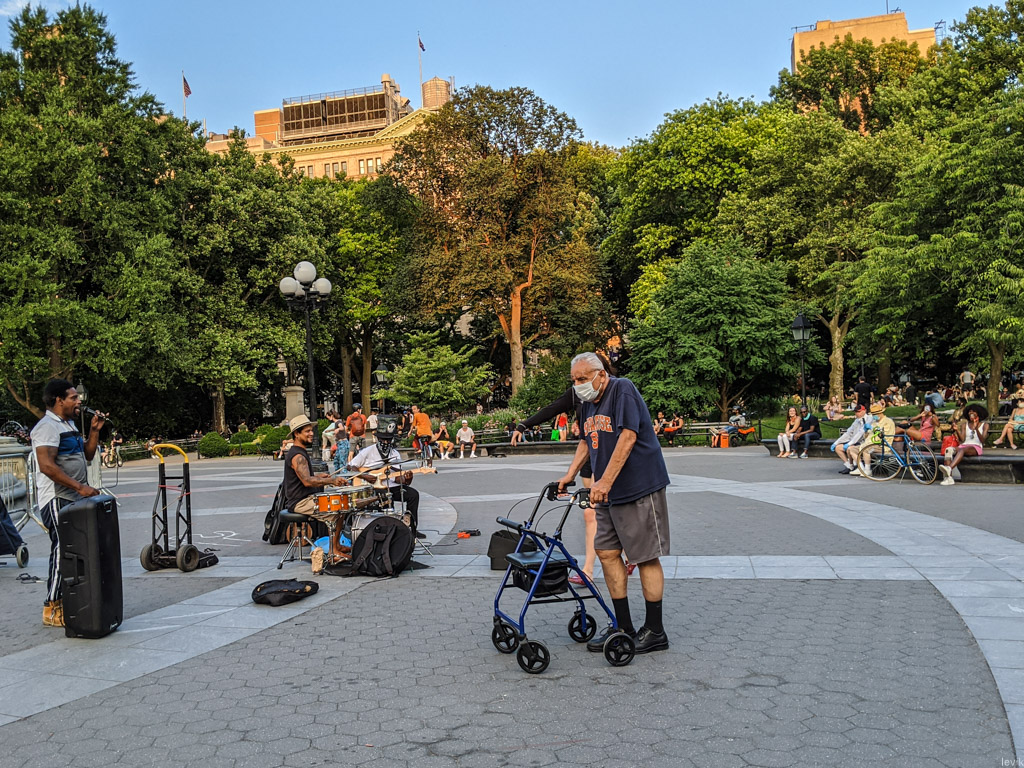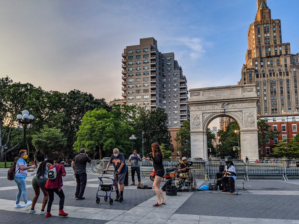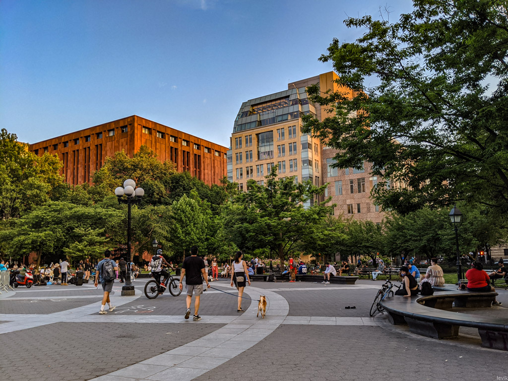 16. Парк Вашингтон-Сквер более людный, чем Юнион-Сквер, с которого мы начинали. Тут вокруг расположены многочисленные корпуса нью-йоркского Университета, и в обычные дни полно студентов. Сейчас занятий нет, и молодёжи тут поменьше, но всё же довольно людно.