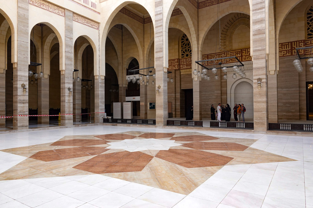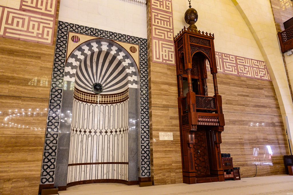 6. Мы зашли в огромный главный зал. Это здание рассчитано на 7,000 человек, то есть это одна из самых крупных мечетей в мире. Внутри было одно открытое пространство, без каких-либо оград. Я тут же вспомнил Голубую Мечеть Стамбула, где в самом центре был загончик только для мусульман.
