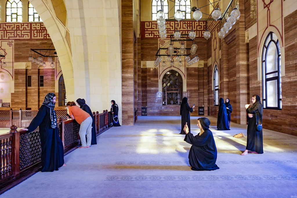 9. Здесь девушки из русскоязычной группы, в выданных им чёрных халатах, фотографировались на фоне огромной люстры, висящей под главным куполом.