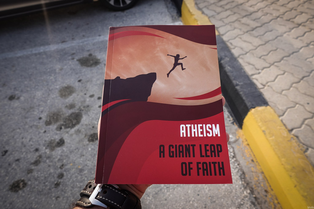 На прощание он откуда-то достал книгу про Атеизм, и попытался подарить её мне. Я отказался, но сфотографировал, и пообещал как-минимум отыскать её потом в сети (это обещание я выполнил, но книгу так и не читал).