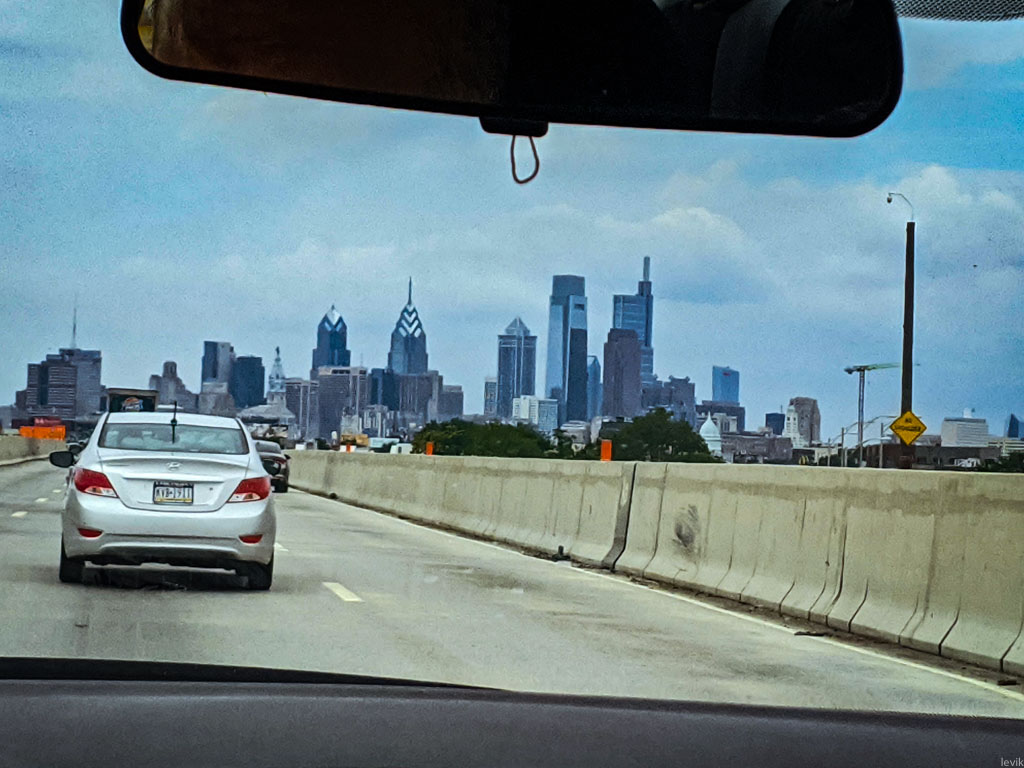 2. Через часик езды мы снова пересекаем границу, на этот раз попадая в Пенсильванию. Там впереди маячат высотки даунтауна Филадельфии. Если честно, я в этом городе был всего пару раз в жизни, и сегодня увидел его только вот с такого расстояния.