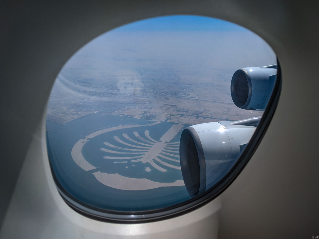 22. А вот второй признак верного выбора: наш борт летит вдоль побережья Дубая, и мне из окна прекрасно видны все его многочисленные рукотворные чудеса. Вот вышла отличная фотография искусственного пальмового архипелага Джабаль-Али.