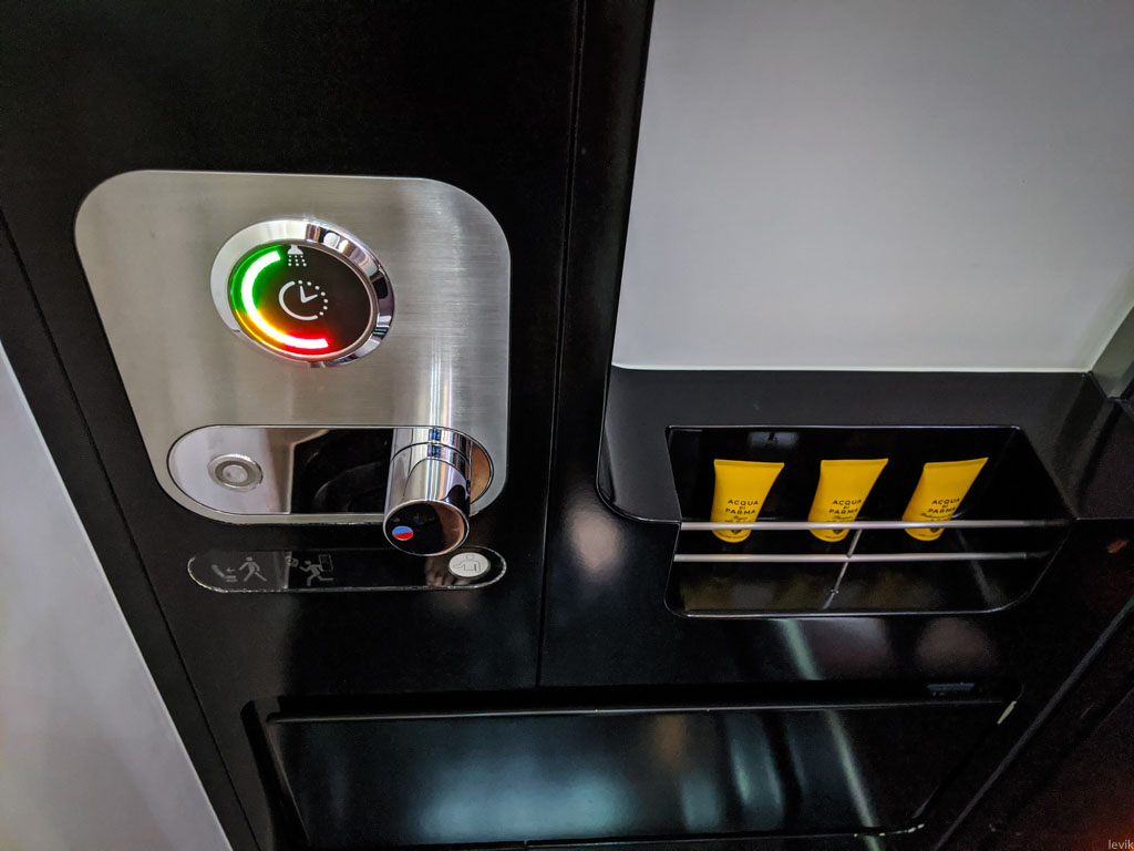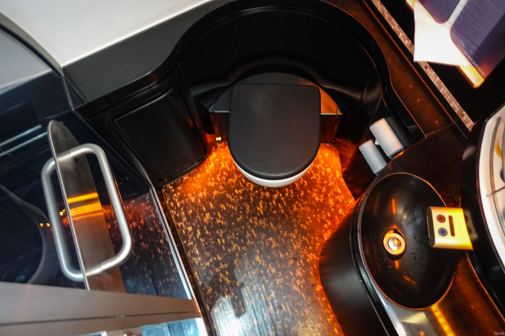 51. Ладно, это всё как бы присказка. Самая главная фишка первого класса Etihad - не столько в апартаментах с закрывающейся дверью, и перегородками, которые не доходят до потолка - главная фишка вот тут, в этом туалете.