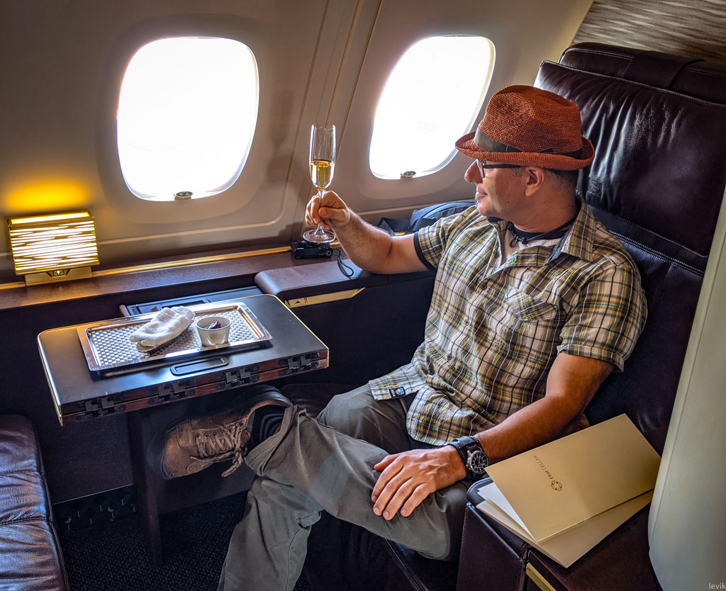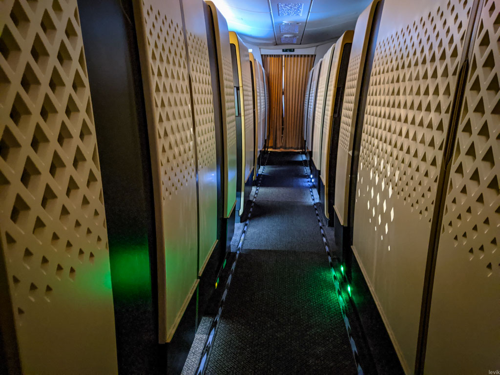 Сейчас, я очень рад, что мне удалось испытать эту ближневосточную роскошь за пару недель до того, как весь мир позакрывал свои границы, и отправил в депо свои самые великолепные авиалайнеры. Давайте я покажу вам, как выглядит один из самых востребованных первоклассных салонов коммерческой авиации:
