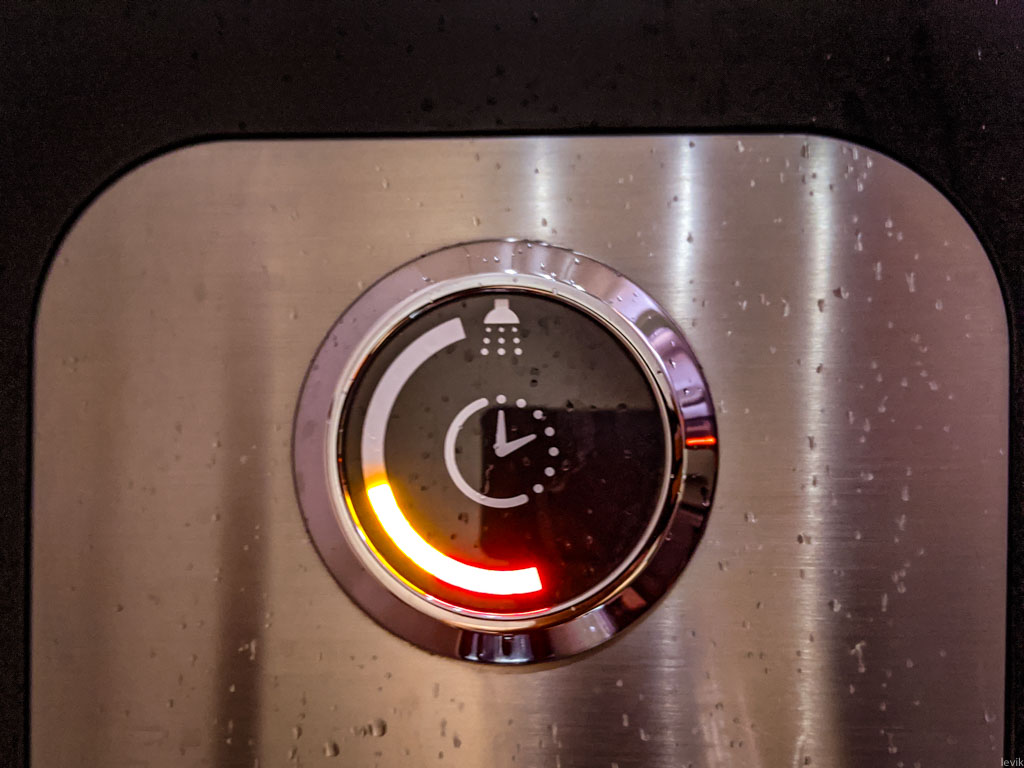 Чтобы принять душ, надо заранее забронировать себе слот времени внутри комнатки. Я забил себе очередь в душ практически первым делом, до того как расписание заполнилось, и вот, настал этот долгожданный момент...