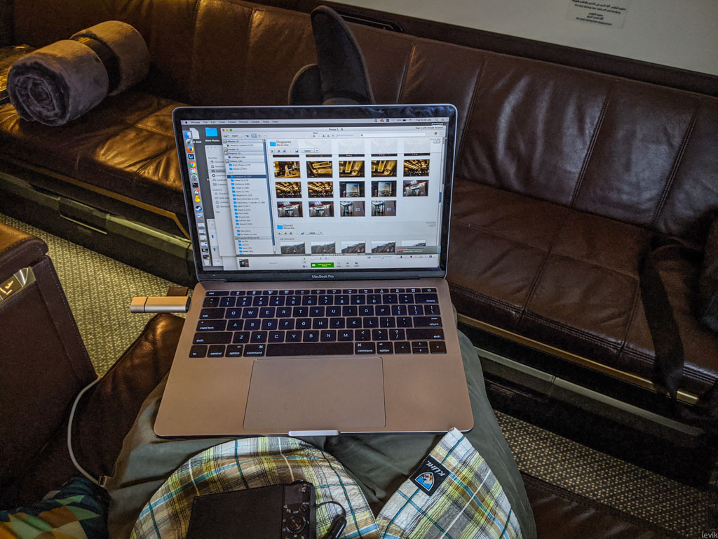 49. Вернувшись в "каюту" я решил немного повозиться с фотографиями из поездки. Классно, когда можно так вот вытянуть ноги, и потупить в компьютер во время полёта.