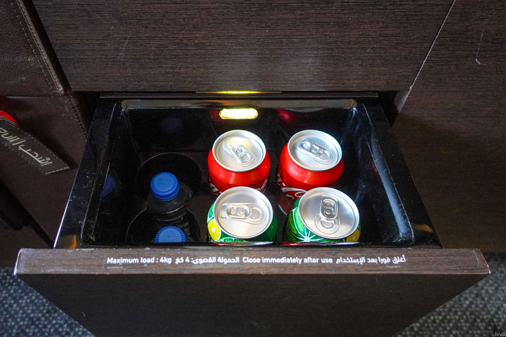 30. Зато по каюте спрятано множество ящичков и отсеков, где можнозабыть после держать до посадки свои мелочи. Есть даже мини-холодильник с напитками. Спиртного тут правда нет, для этого надо звать стюардессу.