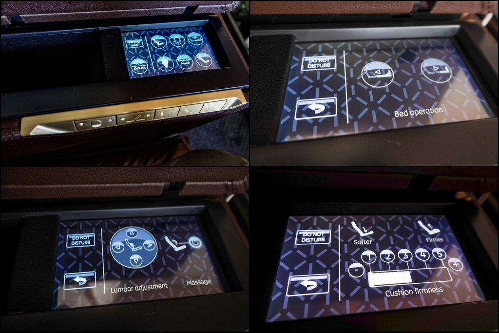 26. Посмотрел на подлокотник. Там сенсорный пульт управления креслом. Целая сложная система управления, с многочисленными экранчиками опций, от наклона спинки, до массажа и упругости.