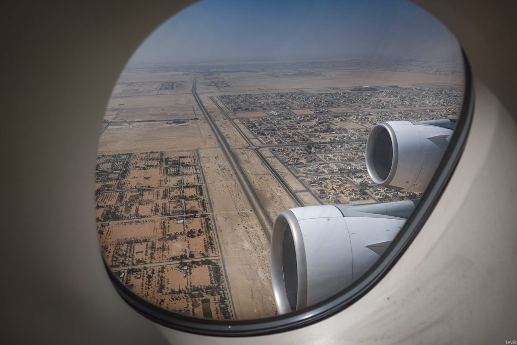 21. Взлетаем! За окном остаются строгие квадраты одноэтажных кварталов Абу-Даби. Тут, как и в Дубае, каждый уважающий себя человек живёт в частной вилле за высоким забором.