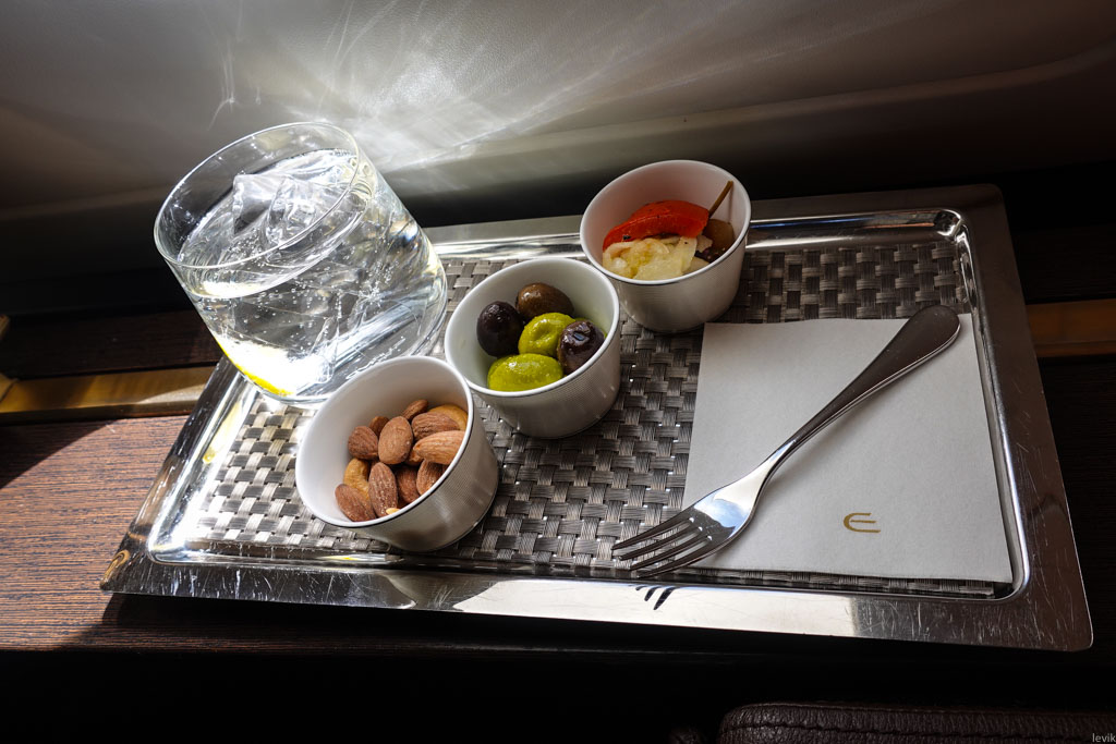 17. Его так же можно сложить вдвое, и получается небольшой столик, на который мне тут же подают пред-взлётное шампанское, финики, и карточку с кодом для бесплатного подключения к интернету.