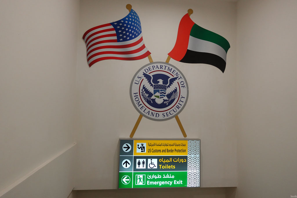 1. Один из необычных аспектов полёта в США из Абу-Даби заключается в том, что правительства двух стран договорились между собой, и прямо в аэропорту в Эмиратах находится подразделение американской пограничной службы. То есть, границу пассажиры проходят ещё перед вылетом, а потом самолёт доставляет их к внутренним терминалам, где на выходе никто уже ничего не проверяет.