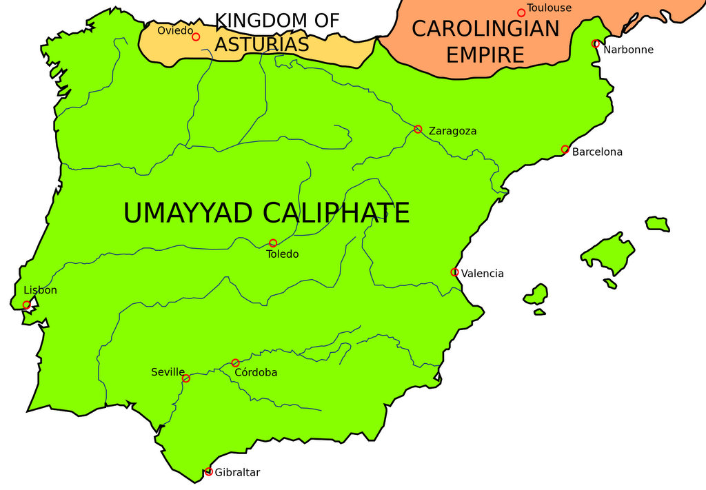 Лишь на самом севере полуострова христиане-визиготы смогли отбить мусульман, сформировав королевство Астурия. Это была узкая полоска земли в высокогорной местности Сьерра-де-Анкарес. С этой небольшой базы, европейцы начали медленный процесс Реконкисты - отвоевания своих земель у мавров. Следующие полтора века короли Астурии постепенно присоединяли к своим владениям кусочки территории.