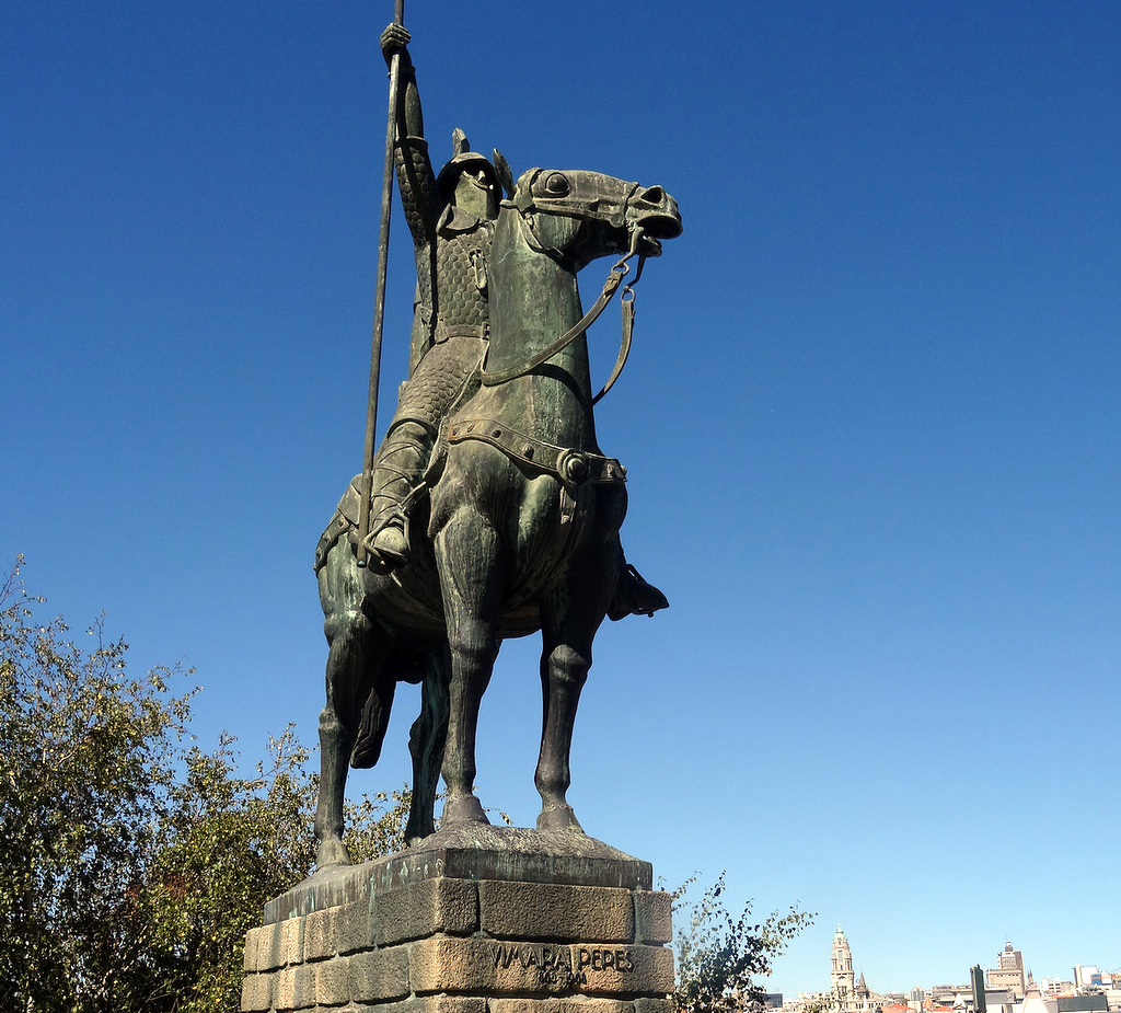Именно эта победа считается сегодня началом современного государства Португалия. А рядом со знаменитым мостом короля Луиша стоит памятник человека, который считается основателем этого государства - первого из португальских графов, Вимары Переша. Но, так как никто толком не знает, как выглядел живший почти 1200 лет назад Переш, скульптор решил нацепить на голову рыцаря внушительный шлем.