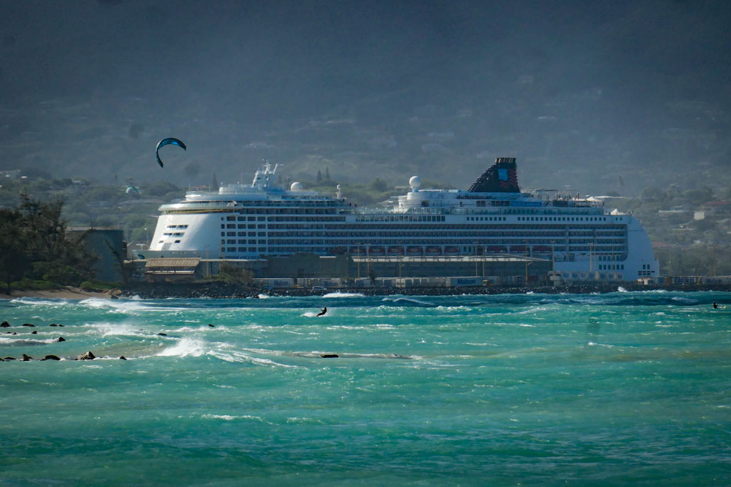 А, чуть не забыл! Пока были на Гавайях на пляже, мне удалось сфотографировать тот самый уникальный лайнер, Pride of America: