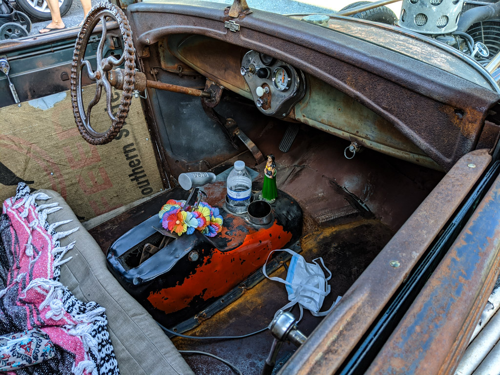 39. А ещё - вот: Я не знал что это такой шедевр в жанре стимпанка, но комментаторы в моём Инстаграме сказали, что это называется "rat-rod" ("крысо-мобиль") - машина специально собранная таким образом чтоб выглядеть как будто её построили на постапокалиптической свалке из непонятно откуда взятых зап-частей. Короче, эстетика "Безумного Макса".