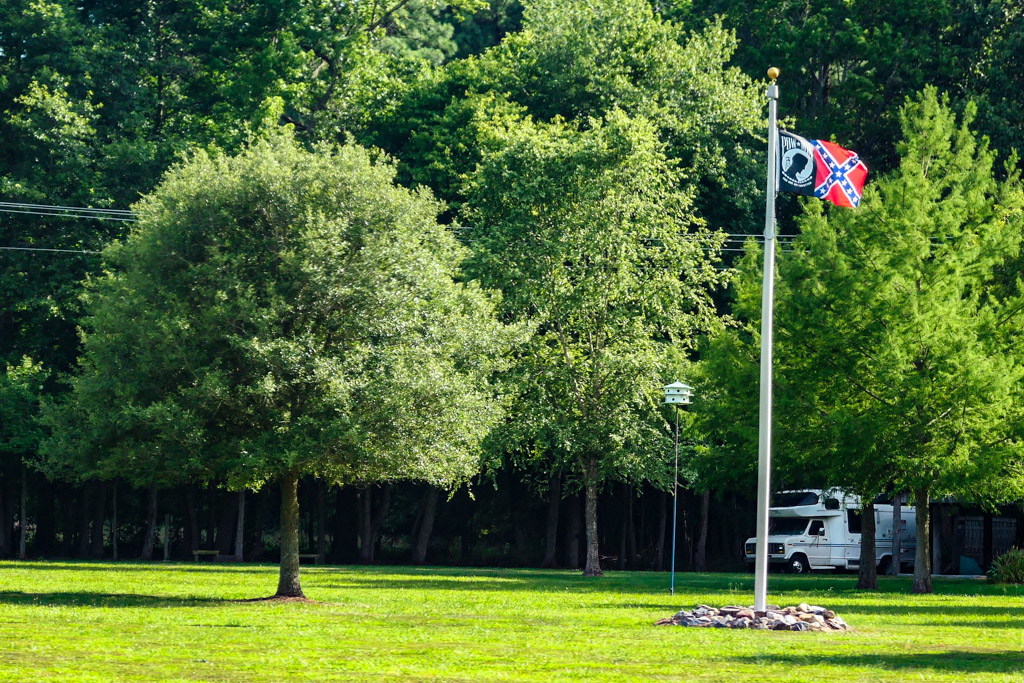 44. Минутах в десяти езды от нашего арендованного дома я заметил флаг Конфедерации. У нас в Нью Йорке таких редко увидишь, а в Настоящей Америке: пожалуйста! Оказалось, тут рядом есть целый мемориал павшим солдатам-южанам.