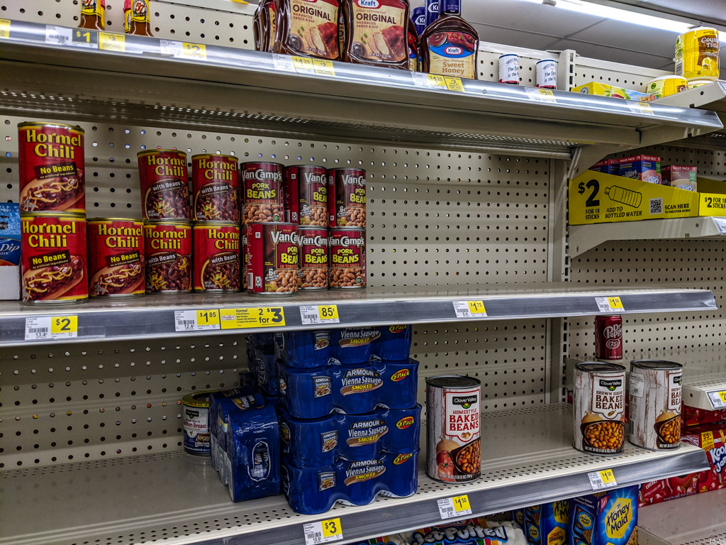 Но здесь, в мэрилендском супермаркете с едой не очень - кроме консервов и печенья можно купить ещё молоко и яйца, а так же жёлтый американски "сыр". Ну и бекон, конечно. А вот с овощами и фруктами туго - за ними надо ехать в "биологический супермаркет" Whole Foods, но это в ста километров отсюда.