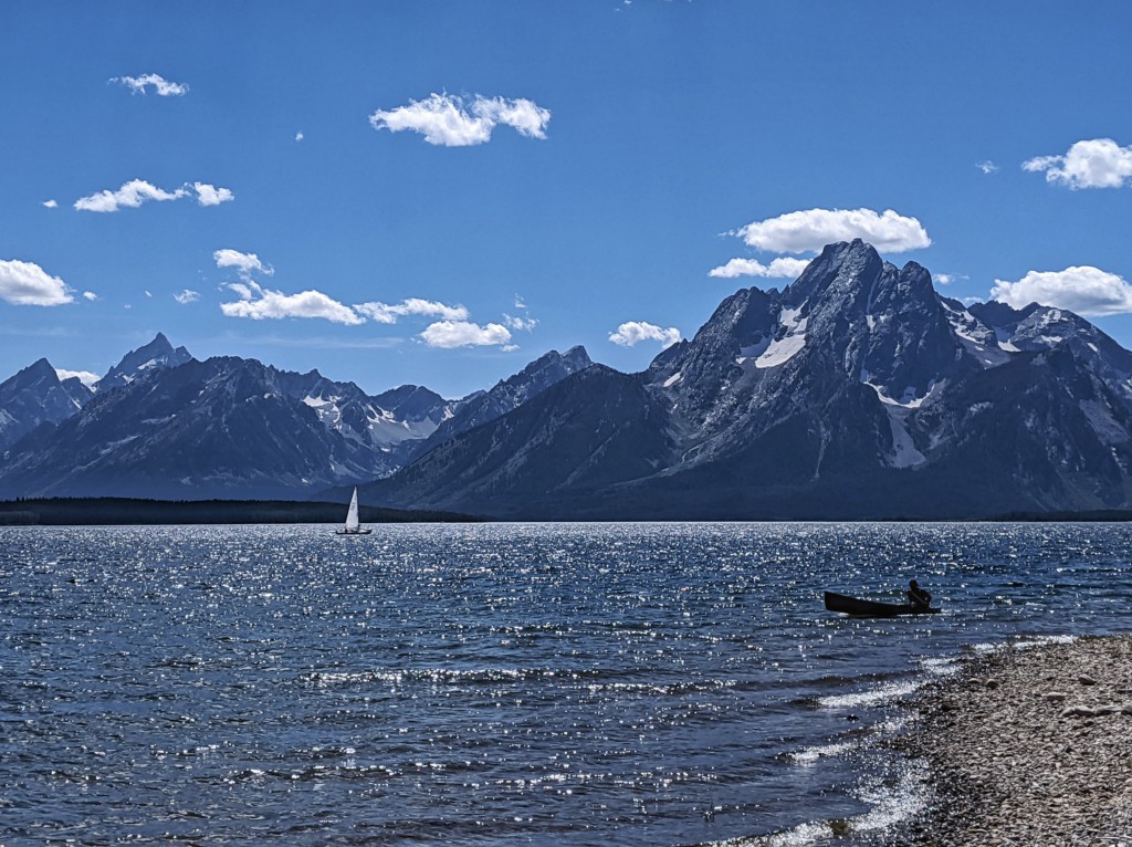 Сегодня мы передвинулись подальше от туристического городка Джексон, в более дикие места Вайоминга, если можно так назвать национальный парк. Как я и думал, интернетом здесь реальная беда. Весь вечер я пытаюсь загрузить с телефона жалкую горстку фотографий.