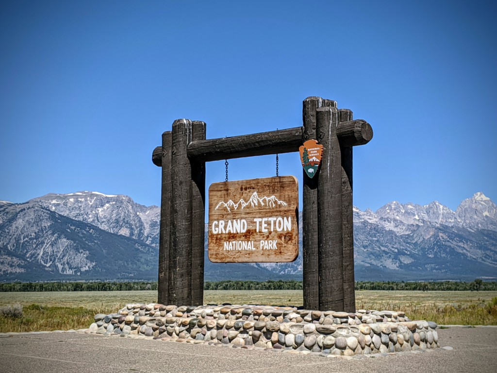 2. Монументальная вывеска на въезде в национальный парк Гранд-Титон. Что интересно: несмотря на то, что въезд в парк тут, платить за него надо где-то через 30км. Стоит это удовольствие $35 с машины (но есть нюансы).